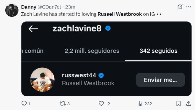 有细心的球迷已经发现国王队后卫扎克-拉文已经在IG上关注了威少。这可能预示着签约将要发生。